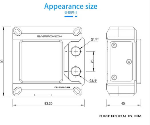 | Overall Dimensions | 93.20mm x 90mm x 45mm |