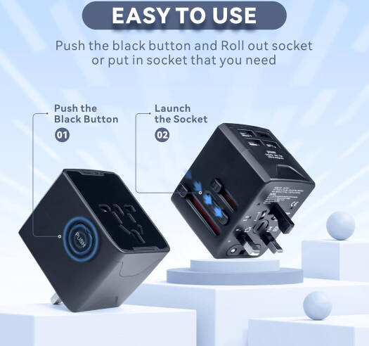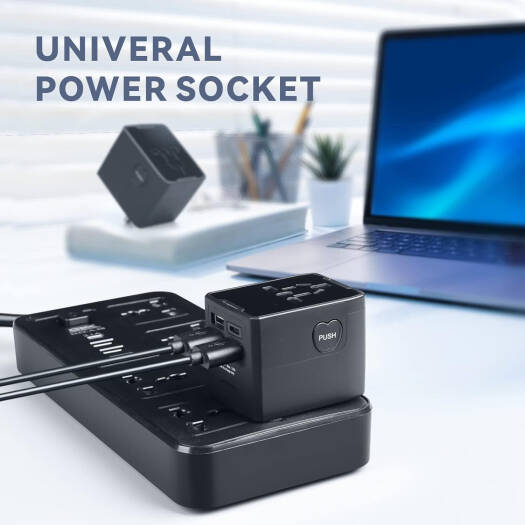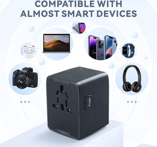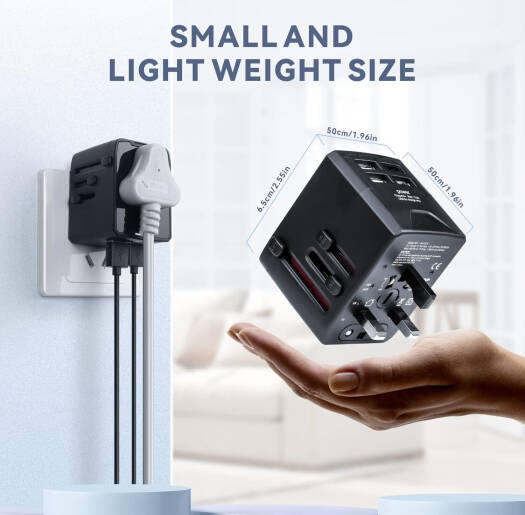 Baytion Universal Wall Travel Adapter, x3 USB + AC Plug Adapter, x1 USB-C, 5.6A Smart Power and 3.0A USB Type-C, Compatible for USA EU UK AU, Black | HH520