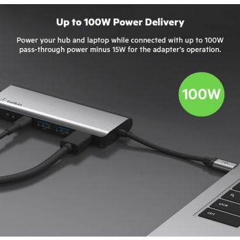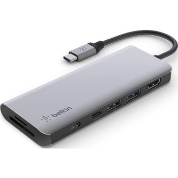 Belkin 7-In-1 Multiport Usb C Hub, 4K HDMI, USB-C, 2 X USB A, 3.5mm Audio, Sd 3.0 Slot, And Micro-Sd 3.0 For Macbook Pro, Macbook Air, Ipad Pro, XPS and More, Gray | AVC009btSGY