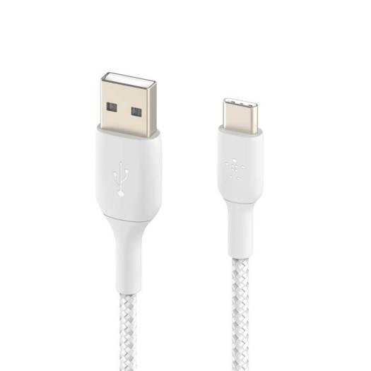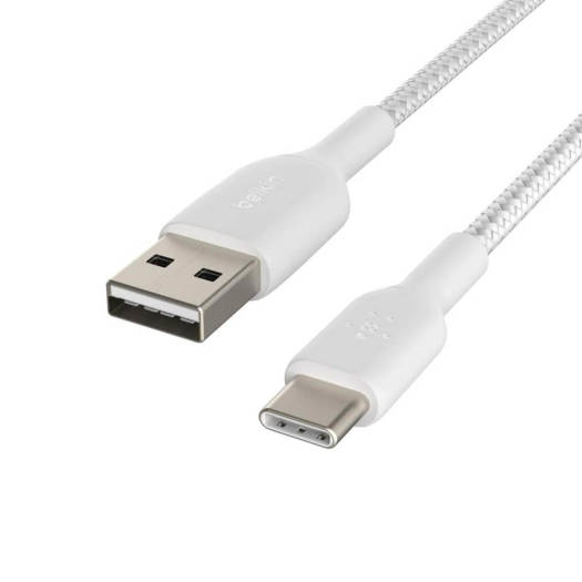 Belkin Braided USB-C Cable, USB-C to USB-A Cable, USB Type-C Cable for Samsung, Pixel, iPad Pro, Nintendo Switch, 2m, White | CAB002bt2MWH