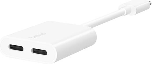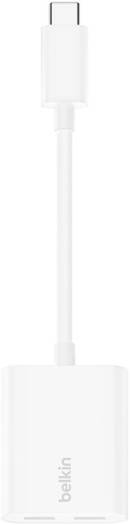 Belkin RockStar USB-C Audio + Charge Adapter, Fast Charging, Up to 60W Power Delivery, 2x USB-C Ports, High-resolution Audio Quality, White | F7U081btWH