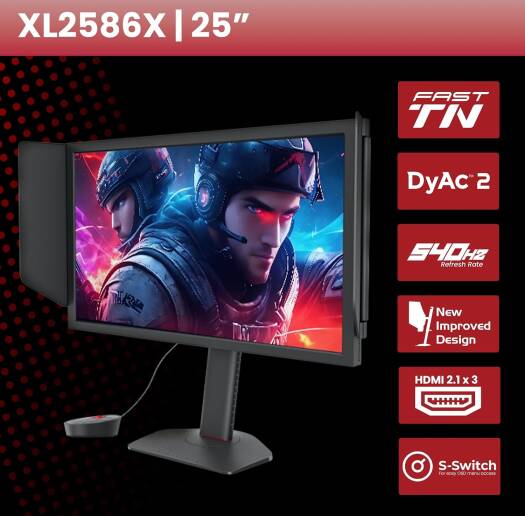 XL2586X Fast TN 540Hz DyAc™ 2 Gaming Monitor for Esports Fast TN 540Hz DyAc 2 Gaming Monitor is the ultimate companion for eSports enthusiasts. Elevate your gaming experience with the unparalleled smoothness of a 540Hz refresh rate and the precision of a Fast TN panel. Enjoy faster pixel response times that deliver crystal clear images and let you focus on the game without motion blur or ghosting after images.