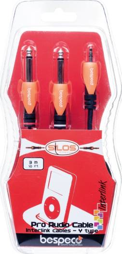 Bespeco SLYMSJ300 Interlink Cable, 3.5mm Stereo Jack, 2 x 6.3mm Jack, 3 Meters | SLYMSJ300
