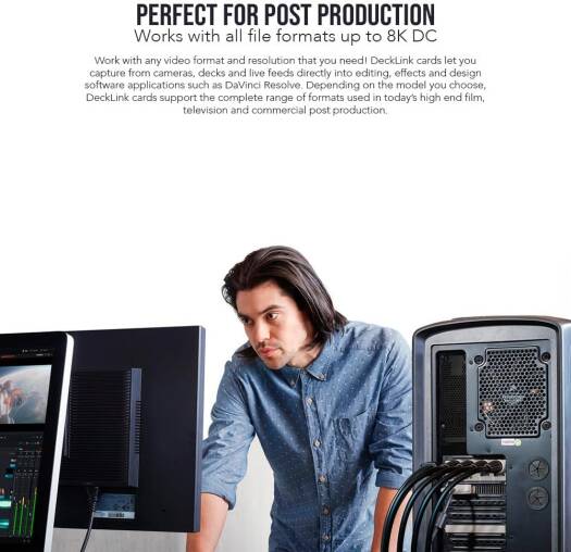 DeckLink 8K Pro G2 DeckLink 8K Pro G2 includes four bi-directional 12G-SDI plus HDMI 2.1 connections to support all SD, HD, Ultra HD, 4K and 8K standards, making it the ultimate professional 8K PCIe capture and playback card for designed for feature film production. You can also use the free DeckLink SDK to configure up to 4 video streams in any direction, format or frame rate up to 4K DCI 60p, for true multi channel capture and playback. DeckLink 8K Pro G2 supports 8 and 10-bit YUV 4:2:2, as well as 10 and 12-bit RGB 4:4:4 with full Rec. 2020 color. In addition, you can work at up to 120 frames per second in HD and 4K, and up to 60 frames per second in 8K. The four 12G-SDI connections support up to 64 channels of embedded audio. DeckLink 8K Pro G2 is perfect for the next generation of high resolution, high frame rate and high dynamic range workflows!