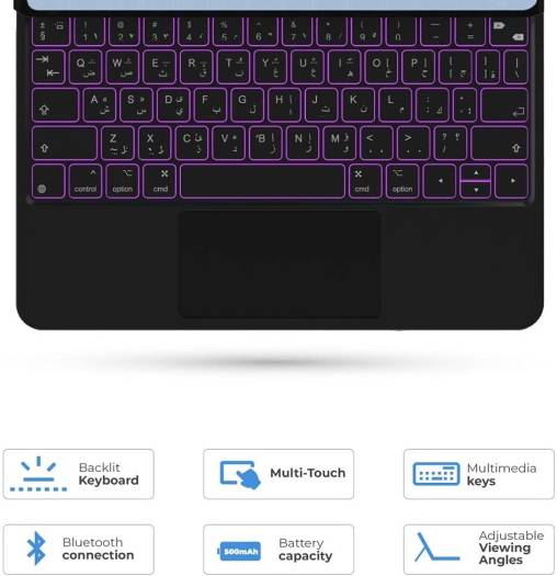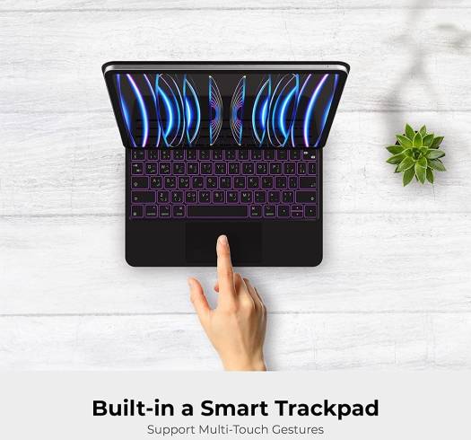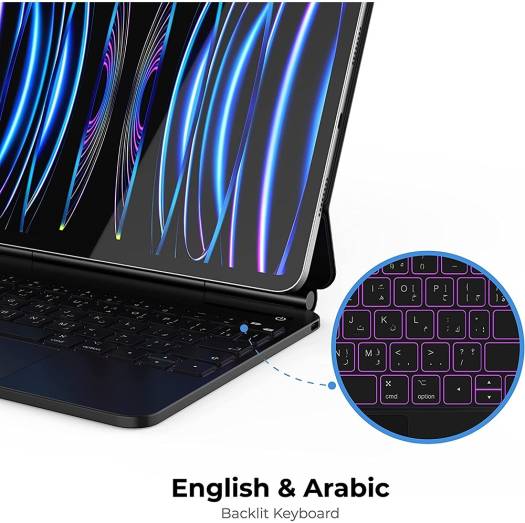 Blupebble Magic Folio Detachable Magnetic Keyboard, Large Precision Trackpad, ENG/ARAB Backlit Keyboard, For iPad Pro 4th Gen 11″/iPad Air 5th Gen 10.9″, Black | BP-FOLIO-MT11LN-AR-EN-BK