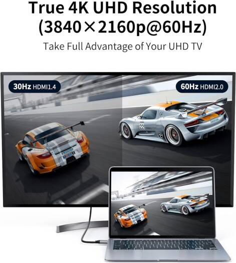 Blupebble USB C to HDMI Cable Type C Coverter 4K Thunderbolt 3 to HDMI Adapter, Compatible with iPad Pro, MacBook, Mate 20, Galaxy S9/S8, Surface Book 2/Go and More – 1 Metre