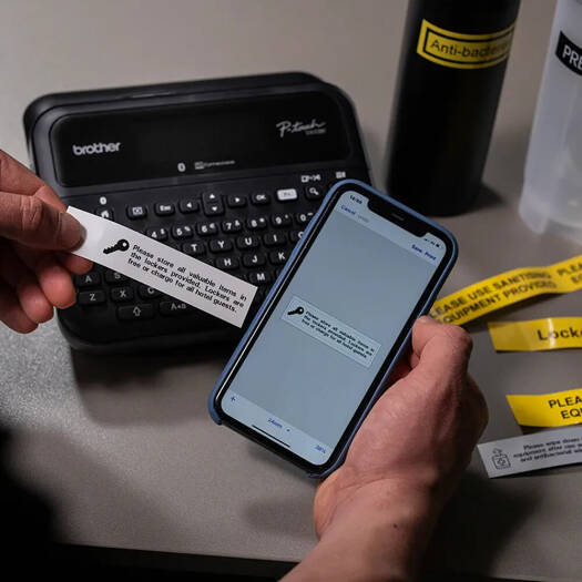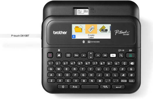PT-D610-BT Easy-to-Use Professional Label Printer The PT-D610BT is a user-friendly desktop label printer that’s compatible with your way of working. With its large full color high-resolution display, QWERTY keyboard, free Brother software and apps, USB and Bluetooth connectivity and other useful built-in features, it’s a versatile labelling solution that’s designed for labelling around the office. Key Features Print up to 24mm TZe laminated tapes width PC or Mac OS® systems direct connection and Bluetooth connection via P-touch Design&Print 2 mobile app Full colour, high-resolution display with backlight 30mm per second fast print speed Supports barcode printing and up to 99 programmable memories
