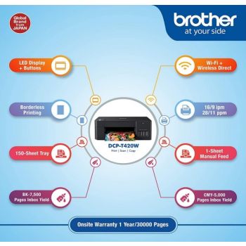 Be the first to review “Brother Wireless All in One Ink Tank Printer, Up to 16/9 ipm (Mono/Colour), Mobile / Wireless Printing, Up to 1200×6000 Dpi Resolution, Refill Ink Tank System, Black | DCP-T420W”