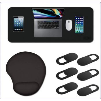 Bumb Computer Accessories (3 in 1)| Large Office Desk Pad with a jell Support EVA Mouse Pad and a Pack of 6 Webcam Privacy covers PU leather, Non-slip, Double-sided Desk Mat for Office