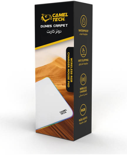Camel Tech Wireless Charger Mouse Pad, RGB Lights, Touch Button for Lighting Control, Foldable for Easy Storage, High Quality Fabric, Natural Rubber Coated Surface, Black | 7340446630090