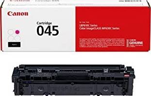 imageCLASS Cartridge 045 Magenta Designed by Canon engineers and manufactured in Canon facilities, GENUINE supplies are developed using precise specifications, so you can be confident that your Canon device will produce high-quality results consistently. Hi-Capacity toner options keep up with your busy printing needs, so you have less replacement efforts and more time. The Single-Cartridge System combines the toner and drum into the same unit, which means you only have one consumable to replace. The MF630 series and the LBP612Cdw use Canon GENUINE Toner, Cartridge 045 CMYK (CMY yields 1,300 sheets / K yields 1,400 sheets, ISO/IEC standard) and Cartridge 045 Hi Capacity CMYK (CMY yields 2,200 sheets / K yields 2,800 sheets, ISO/IEC standard). Compatibility — Color imageCLASS MF634Cdw – All-in-One, Wireless, Duplex Laser Printer — Color imageCLASS MF632Cdw – Multifunction, Wireless, Duplex Laser Printer — Color imageCLASS LBP612Cdw – Wireless, Duplex Laser Printer