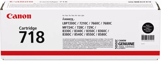 Highlights Yield of 3,400 pages with a single cartridge Genuine Canon toner cartridges ensure detailed results and longevity Get beautiful streak-free mono prints with the All-in-One Cartridge 718 Bk which works seamlessly with your Canon i-SENSYS printer to give you approximately 3,400 pages (ISO 19798 measured). Compatibility i-SENSYS LBP7200Cdn i-SENSYS MF729Cx i-SENSYS MF728Cdw i-SENSYS MF8330Cdn i-SENSYS MF724Cdw