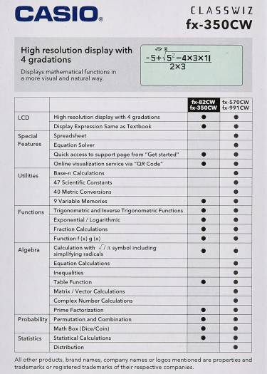 Standard Scientific Calculators fx-350CW