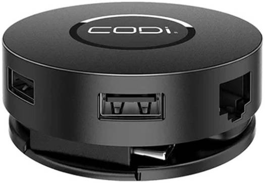 CODI 7 Port Mini USB-C Docking Station, Multi-screen Collaboration Mode, Transfer Speed up to 5 Gbps, Compact Cable Design, Multi-functional, USB-C PD Charging, Micro-SD Card, Black | A01058