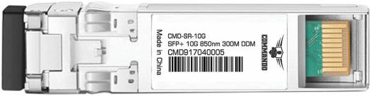 Overview CMD-SR-10G COMMANDO LightningFIBER 10GBASE-SR, SFP+, 850nm, 300m, MMF, DDM 10.3Gbps SFP+ MMF 300m 850nm Transceiver Module – 10GBASE-SR, SFP+ MMF DDM – Hot Swappable – Cisco SFP-10G-SR, Huawei, Ubiquiti, D-Link, TP-Link, MikroTik Multi-vendor Compatible – CMD-SR-10G PRODUCT HIGHLIGHTS • Hot swappable SFP/SFP+/QSFP/QSFP+28 with robust design • Data Transfer Rate Up to 100 Gbps. • Distance Support up to 120km. • Connectivity Media is LC duplex with receiver type PIN. • DDM function supports real-time monitoring for transceiver status. • Fully Compatible with most popular, Top brand Products along with all COMMANDO devices. • Low Po