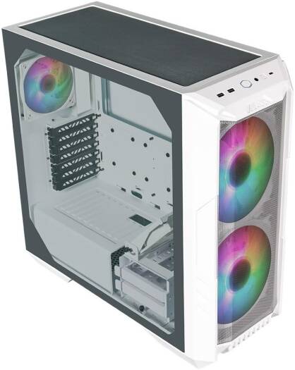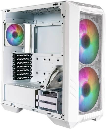 Cooler Master HAF 500 Mid Tower Case, 2x 120mm & 2x 200mm Pre-Installed Fan, Up to 360mm Radiator & 8x Fan Support, Tempered Glass Side Panel, Mesh Front Panel, White | H500-WGNN-S00