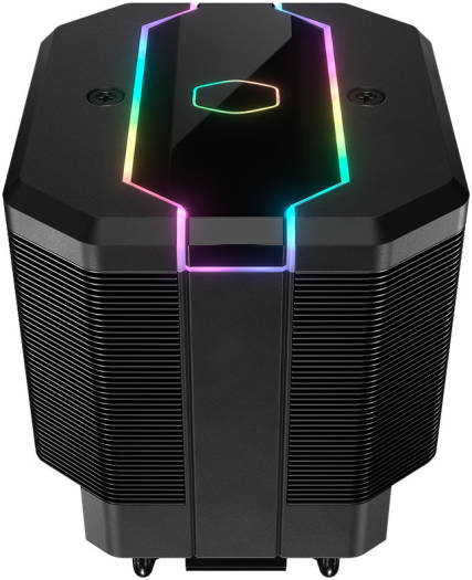 MASTERAIR MA620M CPU AIR COOLER MasterAir MA620M air cooler puts an end to the throttling issue found in high-performance Intel and AMD CPUs. By integrating the efficient yet silent SF120R fan, dual tower heatsinks, and six heatpipes, it delivers superior heat dissipation efficiency. Embedded addressable RGB lighting strip and hexagon LED logo add dynamic visuals to your system. You can use the wired addressable RGB LED controller for easy lighting customization. DUAL TOWER HEATSINK A combination of two sets of heatsink allows bigger and more spread-out surface area. The black paint enhances radiation cooling performance.