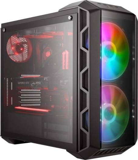 MIND-BLOWING DESIGN Dual 200mm ARGB Fans Build By Design ARGB Lighting System Tempered Glass Side Panel YEAH, YOU'RE SEEING DOUBLE. Dual 200mm fans take the center-stage in the MasterCase H500P ARGB. Airflow is provided through mesh ventilation that spans the entire perimeter of the top and front panels, designed with an industrial construction testifying to a form that follows function. Evolving the design even further, the two 200mm fans now come standard with addressable RGB lighting to offer the utmost in customization. Two optional 200mm fans can be installed on the top panel, with full support for 360mm radiators in the top and front for enthusiast-grade cooling potential and a gaming rig that knows no limits. DUAL 200MM ARGB FANS The iconic, addressable RGB fans are the core of the H-Series in design and function, capable of operating quietly while moving high volumes of air due to their size. BUILD BY DESIGN Transparent panels and a tempered glass side panel flaunt the hardware &amp; fans, while the cable covers, PSU shroud, and cable management space hide the clutter. ARGB LIGHTING SYSTEM The pre-installed ARGB fans can be managed by either the motherboard or an included controller, connected by the included splitter, to create a comprehensive ARGB lighting system. TEMPERED GLASS SIDE PANEL</stro