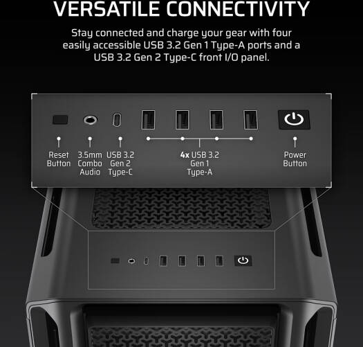 5000T Mid-Tower Capture everyone’s attention with the CORSAIR 5000T’s unique contoured design, ready to house a picture-perfect system with reverse connection motherboard compatibility. Specifications Case Supported Mini-ITX, Micro-ATX, ATX, E-ATX (305mm x 277mm) Case Height 560mm Cas
