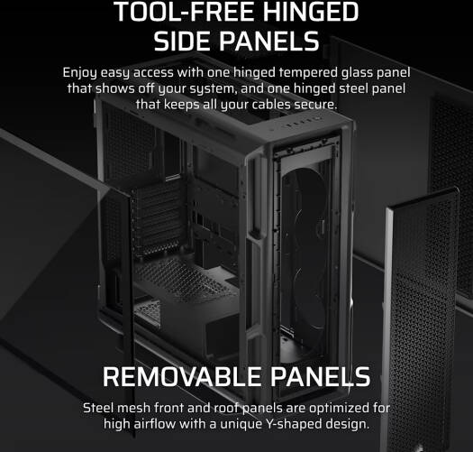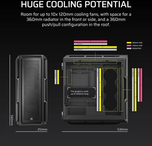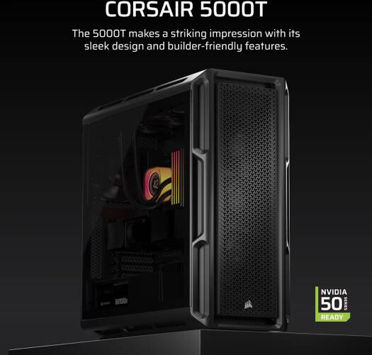 Corsair 5000T Mid-Tower High-Performance PC Case, Up to 360mm Radiators & 10x 120mm Fan Support, Removable Mesh Front & Roof High Airflow Panels, RapidRoute Cable Management, Black | CC-9011300-WW
