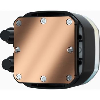 The CORSAIR H150 RGB all-in-one liquid CPU cooler delivers strong, dependable cooling and stunning lighting, with three CORSAIR SP120 RGB ELITE PWM fans, a 360mm radiator, and 37 RGB LEDs. COOL CPU, COOLER LIGHTING All-in-one CPU cooling that illuminates your PC with dramatic color, thanks to 120mm CORSAIR SP RGB ELITE PWM fans generating great airflow and vibrant RGB lighting. FLEXIBLE MOTHERBOARD DIGITAL +5V ARGB SUPPORT Conveniently control your lighting through compatible motherboards. CONCENTRATED COOLING WITH AIRGUIDE SP120 RGB ELITE PWM fans can ramp up to 1,500 RPM, and channel concentrated airflow to where it’s needed with AirGuide technology. HIGH-PERFORMANCE COLD PLATE AND PUMP Equipped with a thermally optimized copper