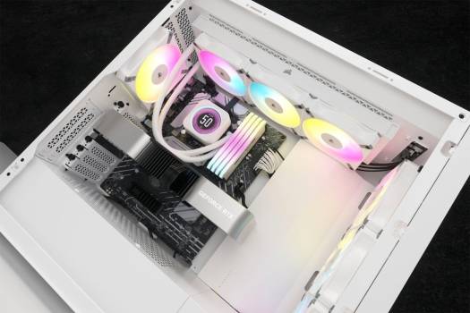 The CORSAIR iCUE H150i ELITE LCD XT Liquid CPU Cooler delivers powerful, customized cooling for your CPU, with a personalized LCD screen that displays GIFs, images, and system information. Compatible with Intel® LGA 1700, 1200, 115X, 2066, and AMD® Socket AM5 and AM4 motherboard sockets Custom 2.1″ IPS LCD screen 3x AF RGB ELITE Fans with AirGuide Technology PWM fan speeds up to 2,100 RPM Zero RPM Mode support High-performance pump head with RGB LED ring Included iCUE COMMANDER CORE RGB lighting and fan speed controller Premium pre-applied CORSAIR XTM70 thermal paste Split-flow copper cold plate Powerful CORSAIR iCUE software
