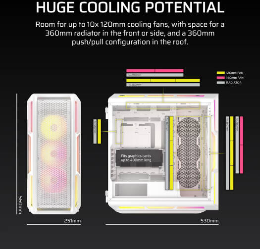 iCUE LINK 5000T LX RGB Capture everyone’s attention with the CORSAIR 5000T LX RGB’s unique contoured design, ready to house a picture-perfect system with reverse connection motherboard compatibility. Specifications