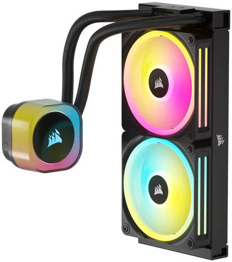 iCUE LINK H100i RGB AIO Liquid CPU Cooler A powerful all-in-one CPU cooler leveraging revolutionary iCUE LINK technology for easier, faster, and cleaner building than ever before. Key Features 240mm Radiator with QX120 RGB fans spinning up to 2,400 RPM Copper cold plate compatible with latest Intel 1700 & AMD AM5 sockets iCUE LINK System Hub included to connect up to 14 devices