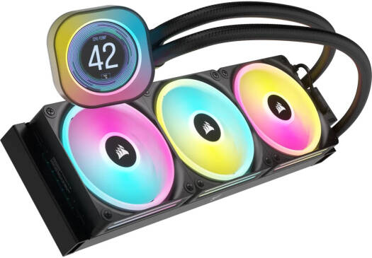 CORSAIR iCUE LINK H150i RGB AIO LCD Liquid CPU Cooler, 360mm Radiator, 2.1″ IPS LCD Screen, 120mm QX120 RGB Fans, 2400 RPM Speed, 63.1 CFM Airflow, Intel 1700 & AMD AM5 Sockets, Black | CW-9061008-WW