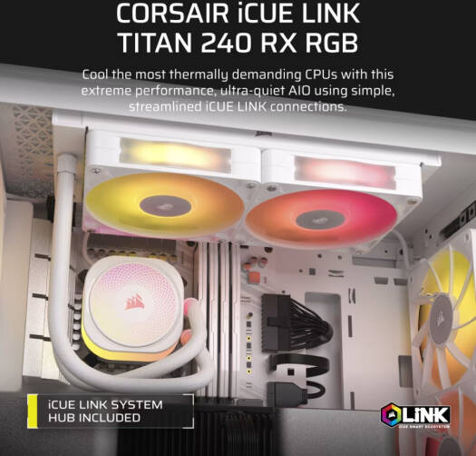 Corsair iCUE LINK TITAN 240 RX RGB AIO Liquid CPU Cooler, Compatible With Intel Socket LGA 1851, 1700, AMD AM5, AM4, Addressable RGB, Extreme Cooling Performance, White | CW-9061020-WW