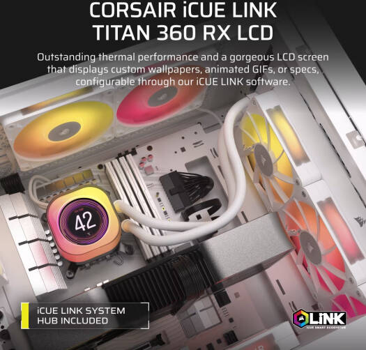 Corsair iCUE LINK TITAN 360 RX LCD AIO Liquid CPU Cooler, Customizable LCD Screen, Compatible With Intel Socket LGA 1851, 1700, AMD AM5, AM4, Addressable RGB, Extreme Cooling, White | CW-9061026-WW