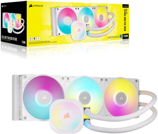 Corsair iCUE LINK TITAN 360 RX RGB AIO Liquid CPU Cooler, Compatible With Intel Socket LGA 1851, 1700, AMD AM5, AM4, Addressable RGB, Extreme Cooling Performance, White | CW-9061021-WW