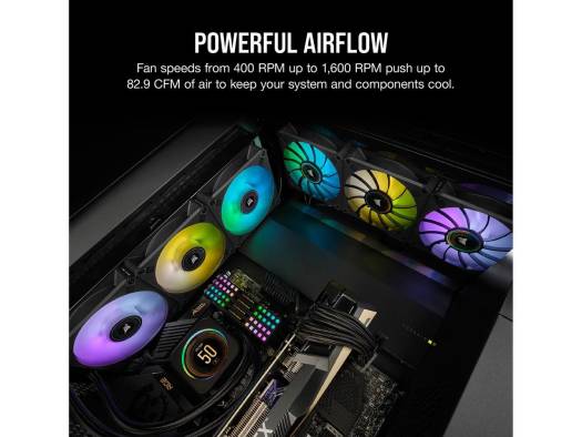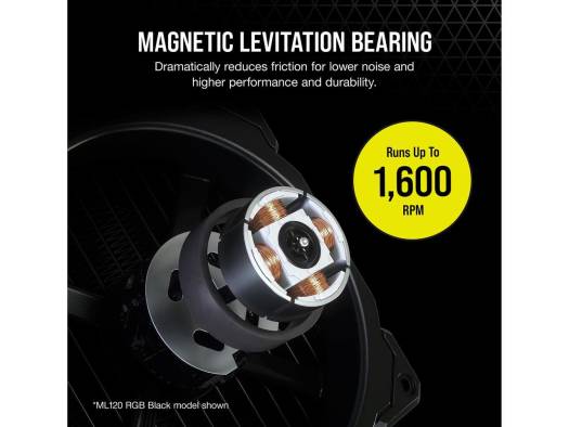 ML RGB ELITE SERIES Up your game by harnessing the power of AirGuide Technology and Magnetic Levitation for the ultimate high-performing experience. CORSAIR AIRGUIDE TECHNOLOGY ML RGB ELITE series fans feature anti-vortex vanes that channel directed airflow. Whether used as intake, exhaust, or mounted to a liquid cooling radiator or heatsink, the AirGuide Technology will increase static pressure and concentrate your airflow for more enhanced cooling. COOLING WITHOUT COMPROMISE Up to 2000 RPM*, PWM fan control with zero RPM mode provides dynamic speed adjustments so you can find the perfect balance in airflow that your system needs. LIGHTING AT YOUR COMMAND