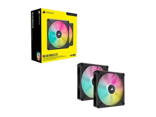 Corsair iCUE ML140 RGB Elite Premium PWM Fan, With iCUE Lighting Node Core, 140mm Size, Magnetic Levitation, 400-1600 RPM Speed, 10-31.8 dBA Sound Level, Dual Fan Kit, Black | CO-9050115-WW