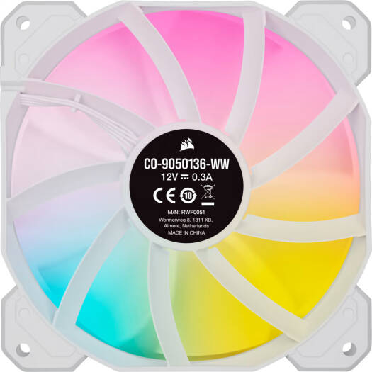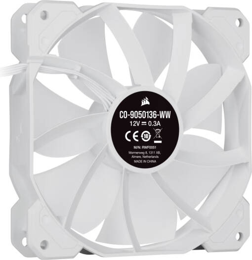 Corsair iCUE SP120 RGB ELITE Performance 120mm White PWM Fan, Hydraulic Bearing Type, 1500 RPM Fan Speed, 47.73 CFM Airflow, Single Pack, White | CO-9050136-WW