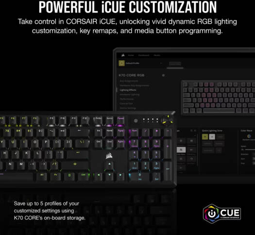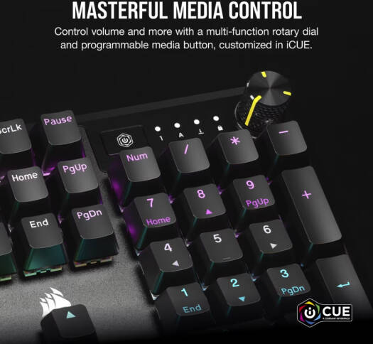 Corsair K70 CORE RGB Mechanical Gaming Keyboard, MLX Red Linear Switches, Multi-Functional Dial, Aluminum Top Plate, iCue Support, Sound Dampening Layers, Black | CH-910971E-NA
