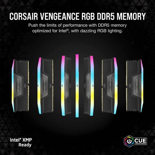 CORSAIR Vengeance RGB 48GB (2x24GB) DDR5 Desktop Memory, 6000MHz Memory Speed (PC5-48000), 36-44-44-96 Latency, Intel XMP 3.0, 1.40V, 288-Pin, Black |