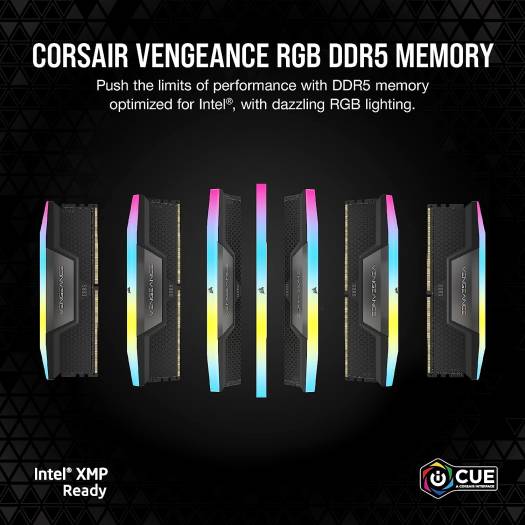 CORSAIR VENGEANCE RGB 64GB (4x16GB) DDR5 DRAM Memory Kit, 6600MHz Tested Speed, 32-39-39-76 CAS Latency, Quad Channel Kit, Intel XMP 3.0 Chipset, 1.4 Voltage, Black | CMH64GX5M4B6600C32