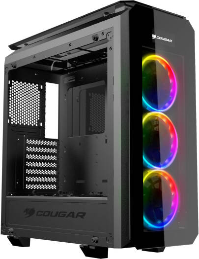 Cougar PURITAS RGB Mid-Tower Computer Case, 3x 120mm Vortex RGB FC Pre-installed Fans, 360mm Radiator Support, RGB Lighting, Cable Management, 2x 3.5″ & 4x 2.5″ Bays, Tempered Glass, Black | PRTS-RGB