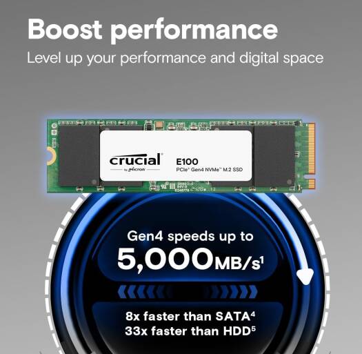 | Series | Crucial E100 1TB PCIe 4.0 Gen4 2280 NVMe M.2 SSD |