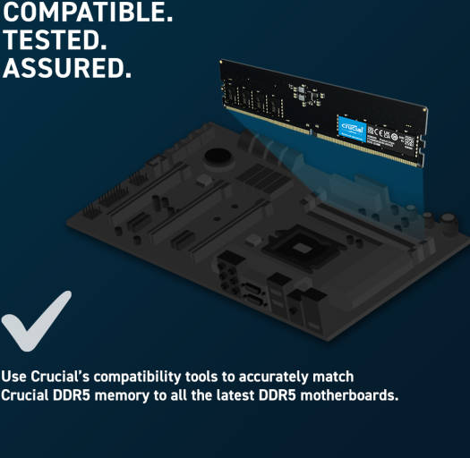 Crucial UDIMM Desktop Memory, 16GB Capacity, DDR5-5600 Speed, 46-45-45 JEDEC, 1.1 Voltage, Unbuffered | CT16G56C46U5