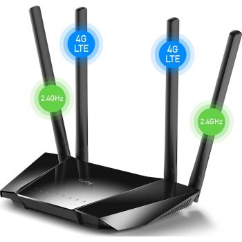 Product description TDD-LTE B38/B40 (2600/2300MHz), 3G: DC-HSPA+/HSPA+/HSPA/UMTS B1/B8 (2100/900MHz), 802.11b/g/n, 4 Fixed antennas, 4 10/100M RJ45 Ports, PPTP/L2TP/OpenVPN/WireGuard VPN Client, DNS over CloudFlare/NextDNS/Google, DDNS, Band locking
