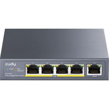 Product Description Cudy 5-Port 10/100/1000M PoE+ Switch 65W, 5 10/100/1000M ports with 4POE+ Ports Unmanaged Switch with UL power adapter IEEE802.3af / IEEE802.3at, 60W External