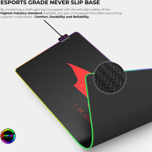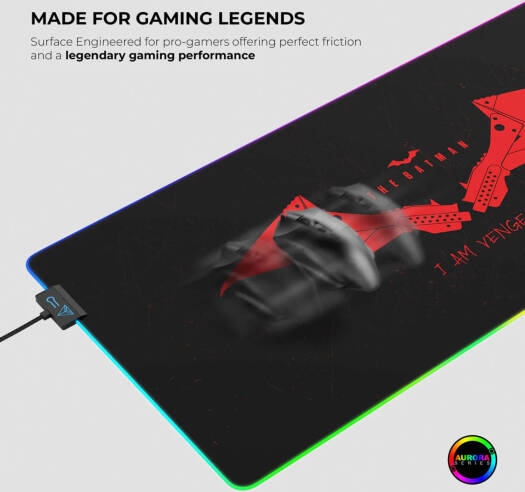 Batman The Cybeart Batman Aurora Mouse Pad XXL is a premium gaming accessory that combines style and functionality. Premium LED RGB Lighting : Lighten up your gaming rig with Cybeart’s Aurora Series mousepads. Premium LED RGB light with high diameter LED tube supporting 16.8 million colors. Adjust the ambience of gaming with Cybeart’s BLAZE PC software allowing ultimate customization on lightning modes, effect speeds, brightness, profiles and much more. Exclusive Micro-woven Cloth : High thread count and smooth surface ensures highest compatibility with both Optical and Laser mouse. Cloth is optimized for both high and low DPI tracking movements.