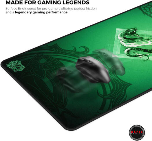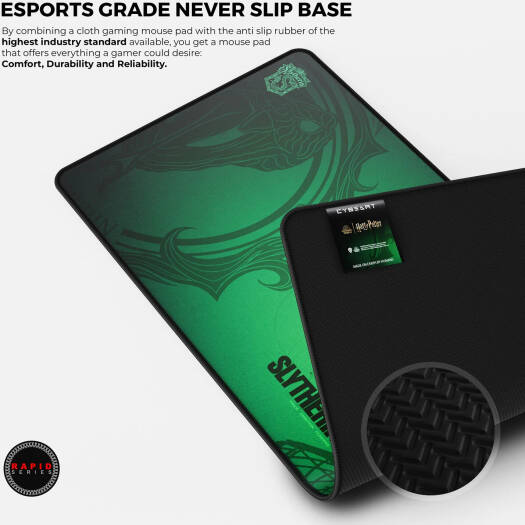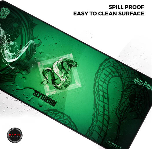 Slytherin The Cybeart Slytherin Rapid Mouse Pad XXL is a premium gaming mouse pad designed for Harry Potter fans, particularly those who identify with the cunning and ambitious qualities of the Slytherin house. Exclusive Micro-woven Cloth : High thread count and smooth surface ensures highest compatibility with both Optical and Laser mouse. Cloth is optimized for both high and low DPI tracking movements. Spill Proof Surface : Cloth features a spill-proof surface which makes it easier to clean up any spill without spoiling your mousepad.