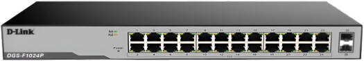 D-Link 24-Port 10/100/1000 Mbps Unmanaged PoE Switch with 2 SFP Ports, 52 Gbps Switching Capacity, LED Power Indicator, 250 Watts, Gray | DGS-F1024P