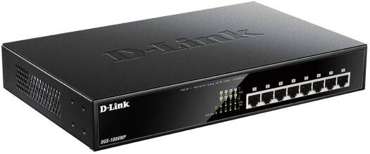 D-Link 8-Port Desktop Gigabit Max PoE Switch, 5 to 14 Ports, 16 Gbps Switching capacity, 8 PoE Ports, Desktop Rackmountable Form Factor, Metal Housing, Black | DGS-1008MP