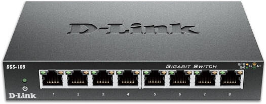 DGS-108 More Ports. More Convenience. The DGS-108 8-Port Gigabit Unmanaged Desktop Switch offers an economical way for SOHO and small and medium businesses to benefit from the increased bandwidth of Gigabit Ethernet. It provides eight Gigabit ports for easy expansion of your network and a quick way to upgrade your network to Gigabit connectivity. Specifications General Model Number DGS-108