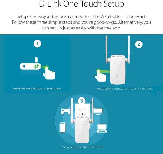DAP-1610 AC1200 Wi-Fi Range Extender The DAP-1610 is a portable plug-in wireless extender that lets you extend an existing wireless network and rid your home of pesky Wi-Fi dead zones once and for all. Specifications General Device Interfaces 802.11ac/n/g/b/a Wireless LAN, 10/100 Mbps Ethernet Port, Reset Button, WPS Button LEDs Status/WPS, 3 Segment Wi-Fi Signal Strength Indicator Standards