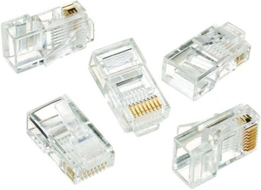 SPECIFICATIONS 1. RJ45 modular plug supports 4 twisted pairs, meet wiring scheme 2. Housing: polycarbonate, 94V-2, transparent color 3. Contact terminal: phosphor bronze 4. Finished: 50 micro-inch gold plating, over 50 micro inch Nickel plated on contact area 5. Operating temperature: -40C to 80C 6. Cable to plug tensile strength: 7.7 kgs 7. Terminates 24-26 AWG stranded wires, wiring scheme T568A/T568B.